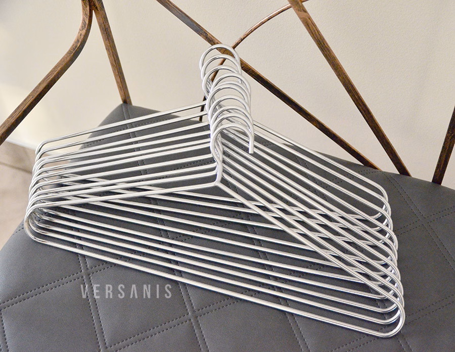 Interiors / Hallway / Closets - Clothes hanger - chrome Versanis is a company where you can find practical accessories for your home and garden. All the products that you will find in the store are of high quality and characterized by beautiful and, importantly, solid workmanship. If you want only functional items of applied art to be in your home, you will find them here. Closet hanger A metal closet hanger is a durable, solid, and useful gadget. It should be in every wardrobe. Thanks to its metal construction, it does not bend and remains stable, which makes it much easier to hang clothes on it. It looks minimalist but highly attractive. Well-organized wardrobe Every closet should have at least a few solid hangers for clothes to always have enough space to hang things. With them, you can keep order and everything in its place. With good-quality metal hangers, you can organize your wardrobe to best suit your needs. With these useful items, you can make choosing clothes a pleasure. It is also worth noting that hangers work great in any room in the house.