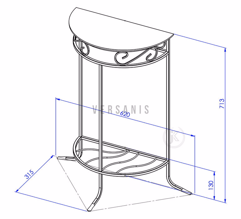 Furniture / Side tables / Glass coffee tables - Coffee table with glass top This is a true best-seller. Beautiful, exceptional and yet very convenient with plenty of arrangement options. The frame of the table is made of high-quality metal and the top is made of glass. The combination of these two materials makes the product perfectly suitable for any interior. The table rests on three legs and its top is a semi-circle. A perfect accessory in a hallway, a living room, a bedroom or a bathroom. Additional s-shaped decorative elements make the product even more aesthetically pleasing.