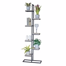 The standing metal plant stand in black is an elegant and functional choice for those...