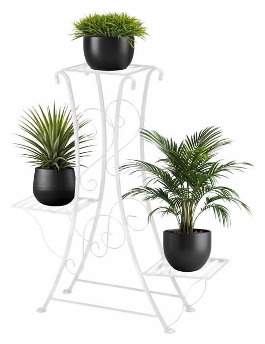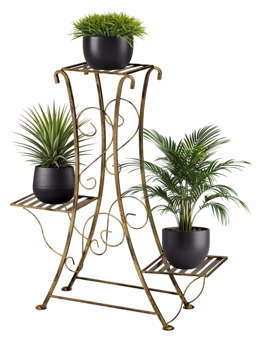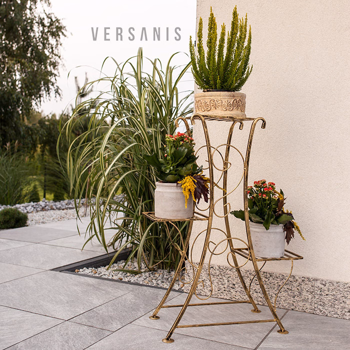 Interior decorations / Plant stands / Flowerbeds - small - Flower stand. Metal flowerbed for 3 plants Modernity and style - these are two characteristics that perfectly reflect the nature of the product presented. The standing flowerbed is no longer just an element used to display the beauty of plants, but also an elegant decoration for any interior. It is characterised by such precise finishing and charming decoration that even on its own, without flowers, it makes a beautiful decoration for the inside and outside. The flowerbed has a modern design and attracts attention with its rich appearance. The flowerbed is additionally enriched with stylish patterns, which decorate the sides of the product. The overall appearance is very exclusive. The structure ensures interesting arrangement of plants, thanks to which the product gains even more aesthetic value. It was made of the highest quality metal, thanks to which it guarantees stability and durability. In combination with flowers, it will create a beautiful composition for many years. It will be perfect as a decoration for the home interior, and will also allow to introduce a carefree atmosphere to any garden.