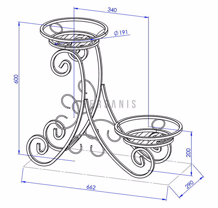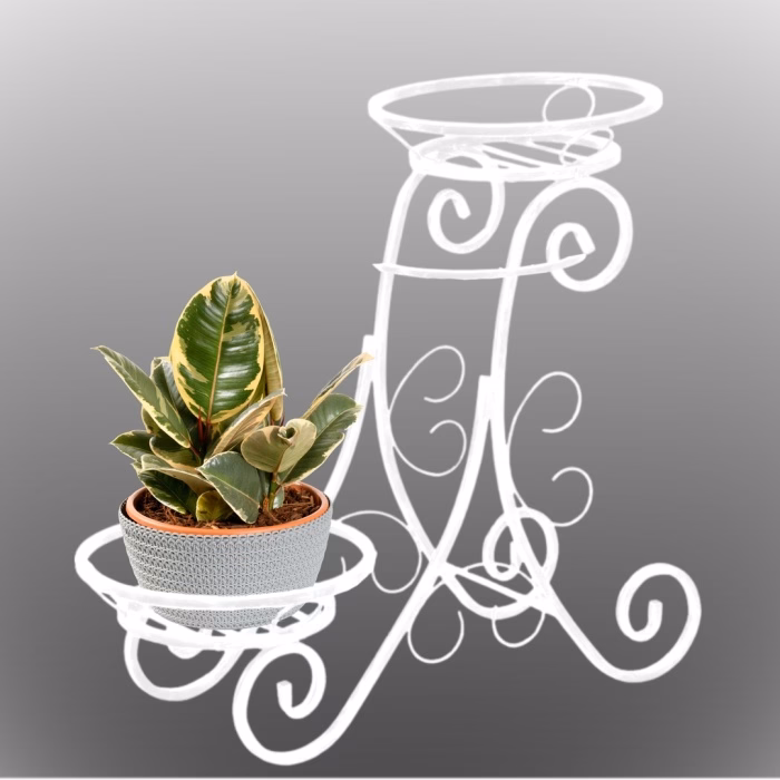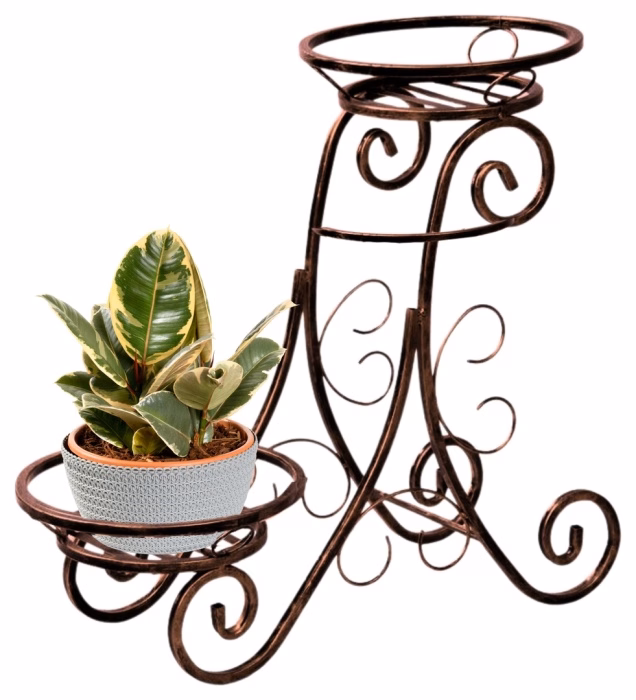 Interior decorations / Plant stands / Flowerbeds - small - Flower stand. Metal flowerbed for two pots The elegant, chic metal standing flowerbed available from the Versanis online shop has a designer form that is somewhat reminiscent of art deco aesthetics. It can be used as a flower pot stand on the terrace, but also as a decoration for the flat or office. Metalwork, a technique used by the Polish manufacturer, is striking and always fashionable. For several seasons it has been one of the favourite trends of interior stylists. The durable, stable construction will meet all expectations of demanding clients. The product comes in several colour variants to choose from, from white to matte black. The stand consists of two capacious, practical plant pot holders, located at different heights and decorated with Art Nouveau waves in steel.