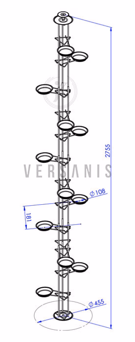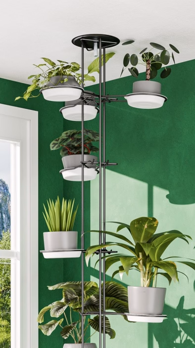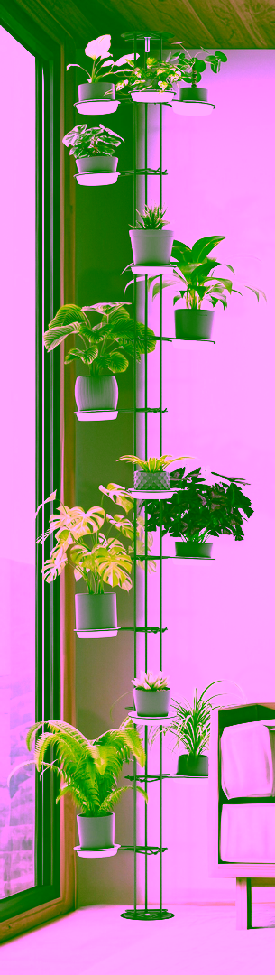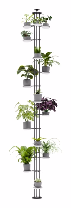 Interior decorations / Plant stands / Tube plant stands - Flower stand - telescopic for 11 plants The metal strut flowerbed can be easily assembled on its own using tubes that span between the ceiling and floor. This extremely practical shelf unit has up to eleven independent plant holders. These can be used to display a collection of identical succulents or to create a stunning mix of different plants. Both the design of the flowerbed and the individual plant holders are robust and durable - they will last a long time and delight the eyes of family and guests. With the tall stand, you can arrange the space in your bedroom, living room, dining room or office - wherever you dream of having your own private garden. Thanks to its adjustability, the flowerbed will fit rooms of different heights. The flowerbed is designed for self-assembly and is sold in cardboard packaging.