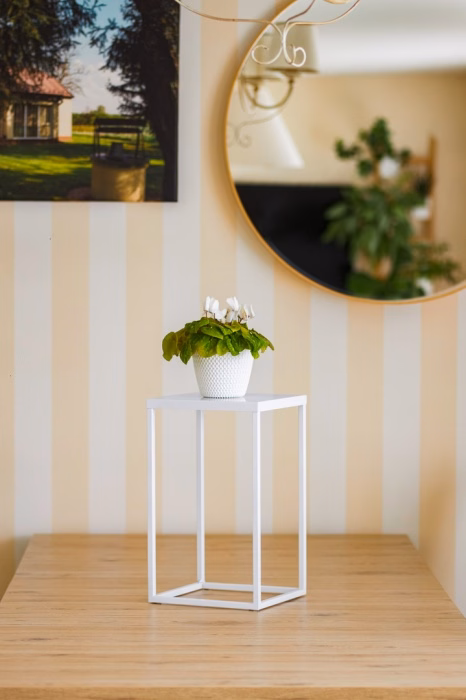 Interior decorations / Plant stands / Flowerbeds - small - LOFT standing metal flowerbed - 40 cm. The elegant and modern metal plant stand has been designed with plant lovers and interior aesthetics in mind. Its versatile design makes it a perfect fit for a variety of interior styles - from minimalist to classic. It is not only a functional flowerbed, but also a stylish and practical place to display your favourite plants. Product features: Material: made of high-quality metal, resistant to corrosion and scratches, which guarantees a long product life. Design: Modern, simple form with subtle details makes the stand an elegant decorative element. Functionality: As well as space for plants, the stand also has a top which can be used as additional storage or to display other decorations. Stability: The wide base provides stability even for larger plants. Multifunctional: Ideal not only for plants, but also as a support table, book stand or other accessories. Ease of assembly: Everything you need for quick and easy assembly is included. Application: The metal stand-top will be ideal for those who want to bring a touch of green into their interior, while maintaining elegance and functionality. It will work great in the living room, bedroom, office or balcony. Recommendations: To maintain the beauty of the product, regular cleaning with a soft cloth is recommended. Avoid direct contact with water and extreme temperatures. Express your style and enhance the beauty of your plants with this unique metal top stand. Compose your own green corners in your home or office!