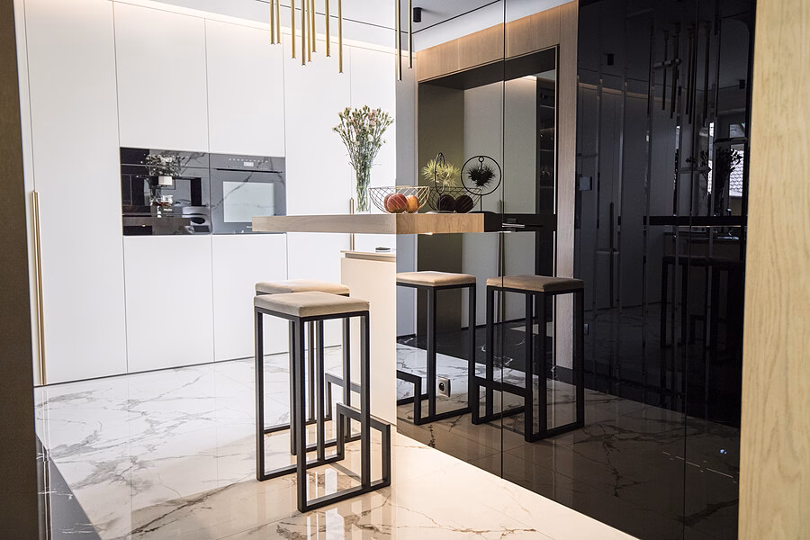 Furniture / Chairs / Hooker stool / Bar stools without backrest - Metal bar chair, hocker with footrest Kapelańczyk is a brand that focuses on creating products of the highest quality, which can be used in almost any space. Its proposals combine design, quality and practicality, pleasing to the eye and fulfilling their tasks for years of use. Choosing this manufacturer is an investment in high-quality, proven solutions. Chair - design in style If you are furnishing your space in an original, modern and designer style, then surely these particular bar chairs with leg rest will prove to be a very good choice. Black metal construction and an upholstered saddle on top in a choice of colours and textures. Simple design, minimalism - an astonishing effect. Where to use a bar chair like this? The bar chairs offered by our Versanis shop in this edition are ideal for, among other things, modernly furnished spaces. They can be an addition in the kitchen, arranged next to a table top creating the form of a table and bar, they will find their use in a pub, restaurant or café. They will be an ideal addition on a modernly arranged terrace. No matter where we decide to arrange them, they will fulfil their tasks everywhere.