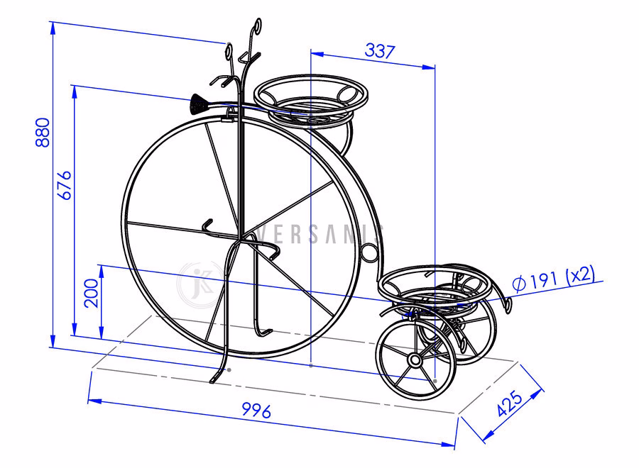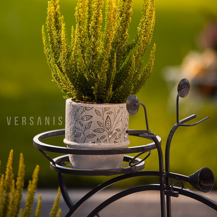 Interior decorations / Plant stands / Flowerbeds - small - Metal bicycle flowerbed large Refresh the character of your garden or terrace with an ingenious, stylish flowerbed in the shape of a retro bicycle. Available from the Versanis online shop, the flowerbed is an accent piece that will charm your householders and guests. Metalwork, a technique it was made in Poland, has been leading the garden trend for years. The metal flowerbed is decorated with romantic motifs of forged steel elements. The product has two bases for pots - in them you can present the most beautiful specimens from your plant collection. Stable, durable and resistant, the flowerbed can also be stored outdoors. To better match the flowerbed to its surroundings, you can choose from several colour variants.