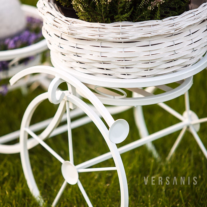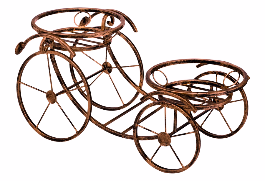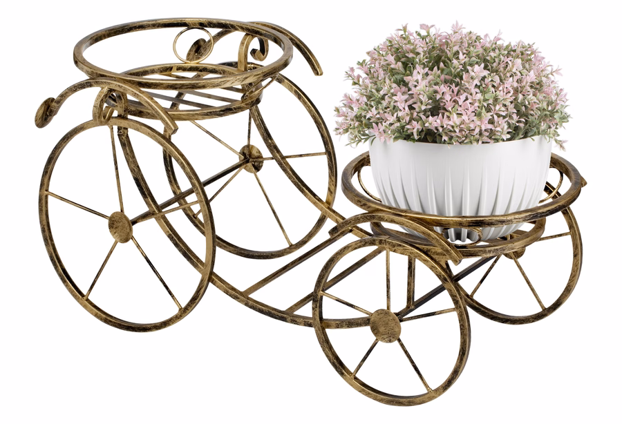 Interior decorations / Plant stands / Flowerbeds - small - Metal decorative flowerbed carriage If you are thinking of changing the look of your garden, a stylish metal flowerbed in the shape of a carriage is a good idea. Visitors will appreciate the sense of style and ingenuity. The carriage-shaped flowerbed is made using a metalwork technique and has been at the forefront of garden trends for years. The metal flowerbed is decorated with romantic motifs of forged steel elements. The product has two pot holders - ideal for the best plant specimens. Stable, durable and resistant, the flowerbed can also be stored outdoors. Thanks to the offered colour variants, it can be perfectly matched to its surroundings.