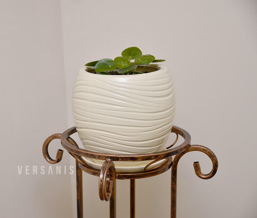 Interior decorations / Plant stands / Forged plant stands – large - Metal flowerbed - larger column The flower pot holder, frugal in form and exceptionally elegant, is a Polish product from the Versanis online shop. It will look effective both on the terrace and as an element of the design of a study, living room or hotel lobby. Similarly to other metal flower stands available in our offer, this one is also characterised by exceptional stability, durability and resistance. It was made using the metalwork technique, which has been returning to favour again for several seasons. Finished with Art Nouveau, subtly curved elements, the flower pot stand will delight any aesthete. With a choice of powder-coated metal colours, the flowerbed will blend in effortlessly with the other elements of the interior. Both green plants and hanging roses will look beautiful on it.