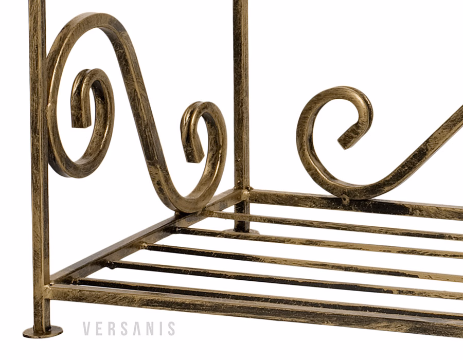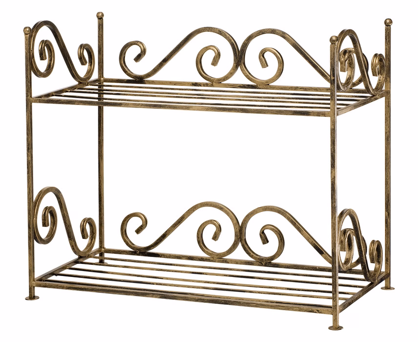Interiors / Living room / Shoe racks shelves / Cabinets & sideboards & highboards - Metal shoe rack The presented product is an ideal decorative element, which will present elegance and style from the very entrance to the flat. It will be perfect as a decoration for a hallway, lobby or corridor. The stand has two wide shelves for storing several pairs of shoes or small items such as hats, gloves or scarves. This model is made of top quality metal, which guarantees exceptional robustness. The shelves are very robust and the rack is strong and stable. In addition to its functional features, the product has first-class aesthetic qualities. It is distinguished by its delicate appearance and precise finish. The decorative 'S'-shaped decors, which both emphasise the unique character of the product and act as protection for the items placed on the shelf, add to its charm. Opt for style and elegance right from the moment you cross the threshold of your home. The shoe rack with its beautiful decorations will be a leading decorative element of any vestibule, hall or lobby. It is sure to charm guests and family!