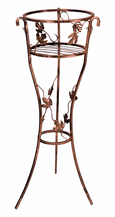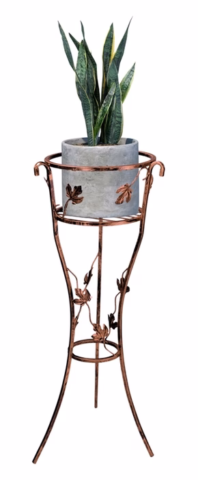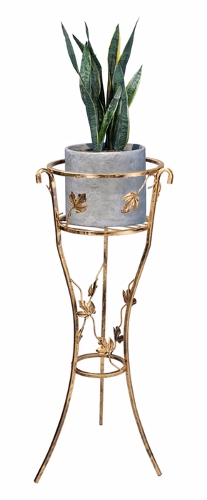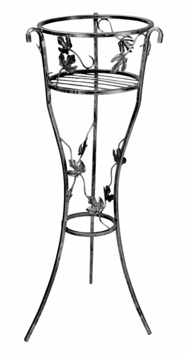 Interior decorations / Plant stands / Forged plant stands – large - Metal single flower bed with leaves Want to make your favourite potted plant visible in an original way? The beautiful steel flowerbed, decorated with decorative leaves, is a hit. The flowerbed is designed for one pot, perfectly displaying the flower. The metal design provides solid support for the pot, while the delicate decorations add lightness and a touch of romance. Single leaf flowerbed Measuring one metre high, this low flowerbed is designed for a single pot to display a particular favourite plant. The metal workmanship provides a sturdy, secure support, while the shape itself and the tasteful decorative details give the plant a special touch. A unique design element A single potted plant stand is a must-have for any interior or well-kept garden. Lovers of plants and elegant solutions will be delighted with the flowerbed's delicate decorative motifs, which ultimately give the whole design a lightness and a touch of romance. Anyone who doubts the quality of the workmanship would be mistaken, however - the solid, durable metal base guarantees the stability of the plants on display. The robust, durable metal base guarantees the stability of the plant on display. The practical height allows the plant to be perfectly displayed, blending in with the rest of the surroundings.