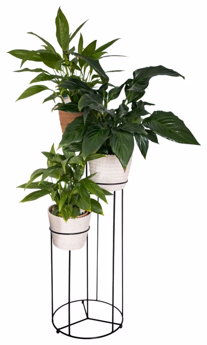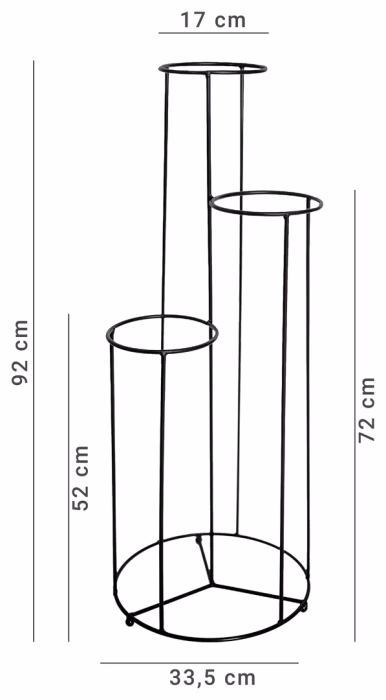 Interior decorations / Plant stands / Flowerbeds made of wire - Metal standing flower bed for three flowerpots - TRIO Robust and stable construction Painted with a high-temperature curing powder varnish. This treatment protects the product from abrasion and corrosion. Universal, minimalist design that blends well with any interior style Supplied as a set, no self-assembly required. Diameter of the pots - 17.5 cm. Cascade flower display - space for 3 plants. Freestanding flowerbed for three plants. Introducing a minimalist metal wire flowerbed in the trendy loft style. Thanks to its simple shape and the possibility of presenting the plants in a cascading form, the flowerbed will decorate any room and will fit in perfectly with any style of interior. The flowerbed is made entirely of metal and has a heat-hardened lacquer coating to protect the product from corrosion.