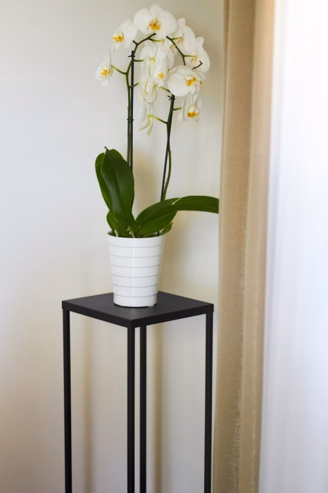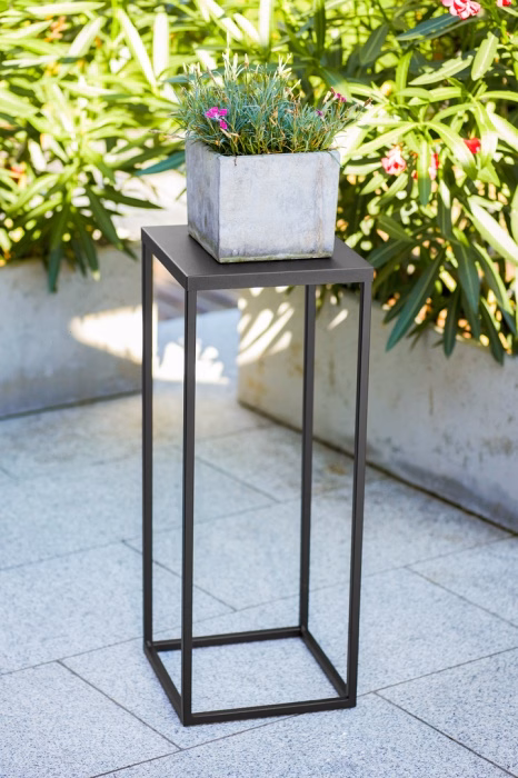 Interior decorations / Plant stands / Flowerbeds - small - Metal standing flowerbed. LOFT plant stand 60 cm. This elegant and modern metal flowerbed designed for one plant is the perfect complement to any interior. Made from the highest quality metal, it provides durability and stability even for larger plants. Its minimalist design fits harmoniously into a variety of decorative styles, from industrial to Scandinavian. With a height of 60 cm, this flowerbed perfectly enhances the beauty of the plants while allowing light to reach the leaves and roots unhindered. Fitted with special protective bases, it protects floors from possible scratches. Its versatile colour scheme means that it will suit most rooms, whether at home or in the office. With its simple but striking design, it is not only a practical place for your favourite plant, but also a decorative element of any space.
