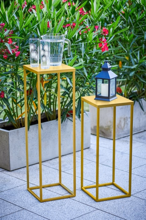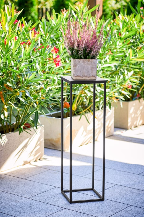 Interior decorations / Plant stands / Flowerbeds - small - Metal standing flowerbed. LOFT plant stand 70 cm. The 70 cm. high metal flowerbed is a product carefully designed for those who appreciate aesthetics and functionality. This unique single plant stand not only enhances the charm of each plant, but also offers a wide range of arrangement possibilities that can be created according to individual needs. Product features: Material: The flower stand is made of durable and corrosion-resistant metal for long life and finished with a high-temperature hardened powder paint, which further contributes to the stand's protection. Height: The optimum height of 70 cm makes the plant look majestic and becomes the focal point of any room. Design: Elegant lines and a modern look make this stand the perfect addition to any interior, from modern to more traditional. Stability: The wide base ensures that the stand is stable, even when heavier objects are placed on the tabletop. Versatility: Perfect for potted plants, but also as a place for candles, photographs or other small items. Application: The metal top flowerbed is the perfect choice for plant lovers who want to combine functionality with aesthetics. It will work perfectly in the living room, bedroom or even in the office. It can also serve as an unusual auxiliary table. Recommendations: To preserve the beauty and durability of the product, it is recommended to avoid direct contact with water and to wipe it regularly with a soft cloth. Enhance the uniqueness of your interior with our metal flowerbed - let it become not only a home for your plant, but also an expression of your style.