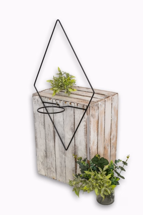 Interior decorations / Plant stands / Wall mounted plant racks - Metal wall flower bed - DELIE Made of metal Suitable for one flowerpot Protected by a moisture- and weather-resistant lacquer coating. Works well both indoors and outdoors Available in black, white and gold Holds up to 7 kg. The diameter of the flower base is 12.5 cm. It has a hoop to stabilise the plant, preventing it from tilting Elegant and decorative back in the shape of an inverted diamond Shipped fully assembled without the need to screw it together yourself Wall florist Presenting, one of this season's most fashionable wall flowerbeds. The beautiful, simple, unobtrusive form is the quintessential way to perfectly display your plant. It is the plant that will play the main role on it. The Delie flowerbed will work well in any interior. It has a strong and stable construction, which is extremely important for a hanging flowerbed. Another advantage is the fairly large diameter of the 12.5 cm flower pot ring. This will allow plants of a considerable size to be displayed. Paint finish and resistance to moisture The flowerbed has been painted with high-temperature curing powder paint. This treatment ensures the product's resistance to atmospheric effects, making it ideal not only for interiors, but also for mezzanines, terraces and balconies. Colour variants We offer three timeless shades to choose from. This makes it even easier to integrate it into your space. The available colours to choose from are: semi-matt black, white and gold.