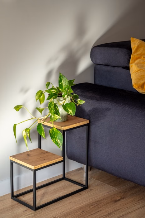 Interior decorations / Plant stands / Flowerbeds - small - Multifunctional stand 2 L The metal flowerbed with a unique L-shape and two shelves is not only a practical decoration for the interior and garden, but also an expression of individual style and aesthetics. It is made of robust metal, ensuring durability and stability. The presented flowerbed provides the perfect place to display your favourite plants and flowers. With two shelves, you have enough space to create beautiful plant compositions, adding a unique charm to your interior. Its minimalist yet elegant design makes it suitable for a variety of garden arrangements, from modern to classic. It not only enhances the natural beauty of your plants, but also adds an impressive decorative element. Enjoy the beauty of nature in harmony with modern style with this unique L-shaped metal flowerbed.
