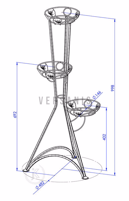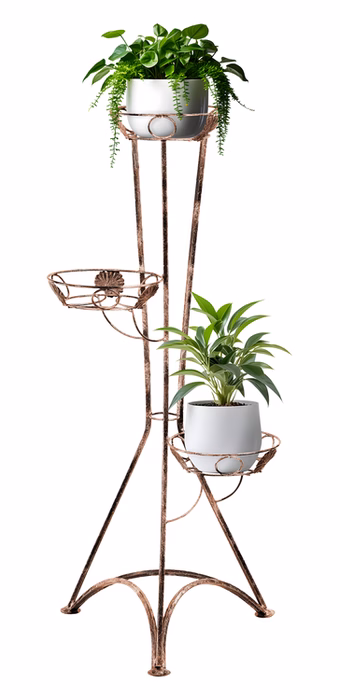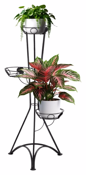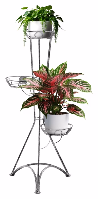 Interior decorations / Plant stands / Forged plant stands – large - Plant stand for 3 plants This small decorative product will bring a unique atmosphere to any interior. It will allow you to create beautiful flower compositions, decorating the entire flat. The flowerbed is distinguished by its exceptional aesthetic qualities, and its design attracts attention and delights with elegance. The product is equipped with special places intended for flowerpots. The plant stands are made of top-quality material, which guarantees solidity and durability. The flowerbed is elegantly decorated, adding to its charm and aesthetic appeal. You can be sure that this model will withstand the load and the pots will remain firmly in place, whatever the circumstances. The entire structure stands on strong legs, ensuring complete balance. The flowerbed can be used both indoors and outdoors. It is just as ideal as a decoration in the hallway and living room as it is on the balcony or terrace.