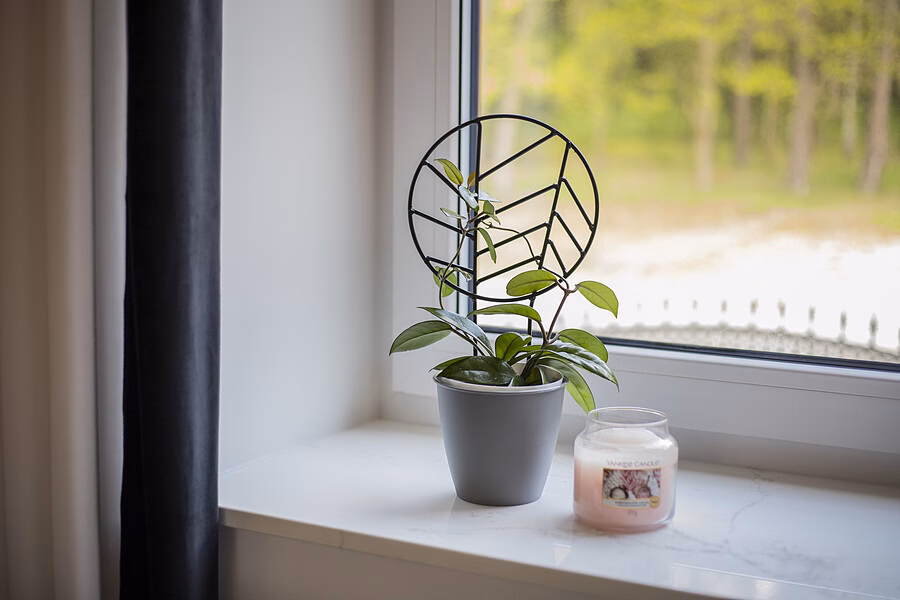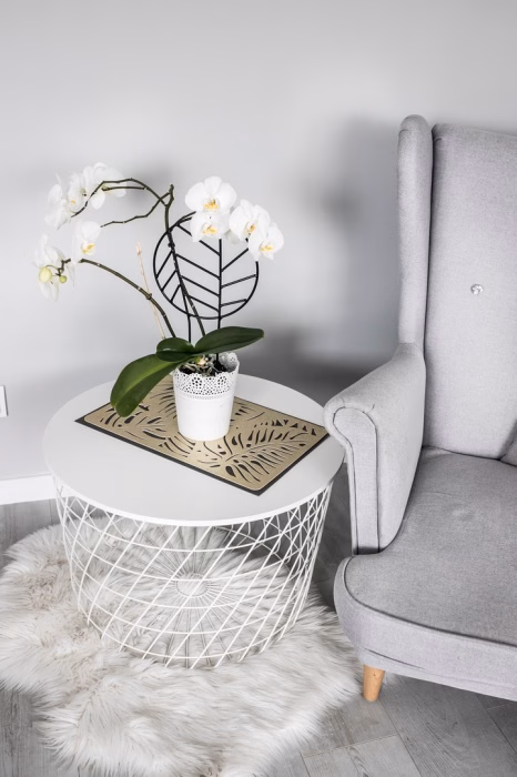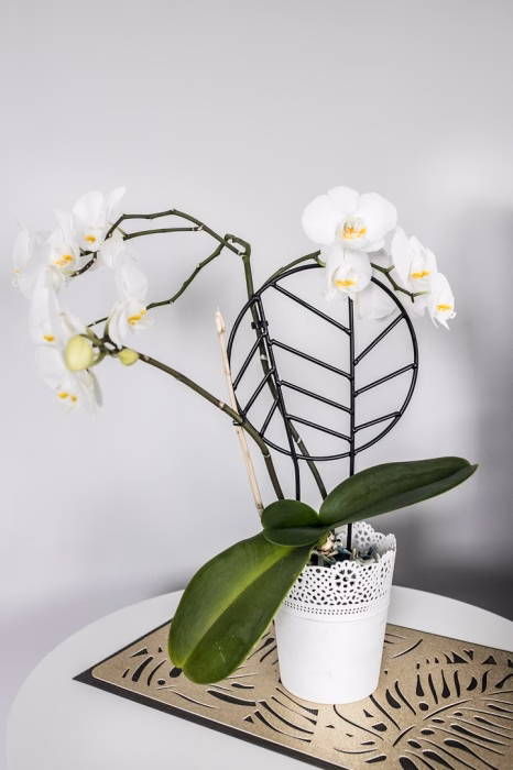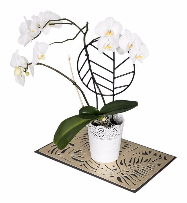 Interior decorations / Plant support - Potted plant support - AŻUR Firstly, sustainable. Secondly, beautiful. Thirdly, minimalist. These are the first associations that come to mind when looking at this support. The openwork flower support is a beautiful, delicate object that provides the perfect support for your plants. The simple design and availability in two timeless colours - black and white - make it possible to incorporate the support into any interior style. The support is made entirely of 4 mm diameter wire, painted with powder paint, which perfectly impregnates and protects the metal from external factors. The entire structure is 38 cm, and the part inserted into the ground is 18 cm.