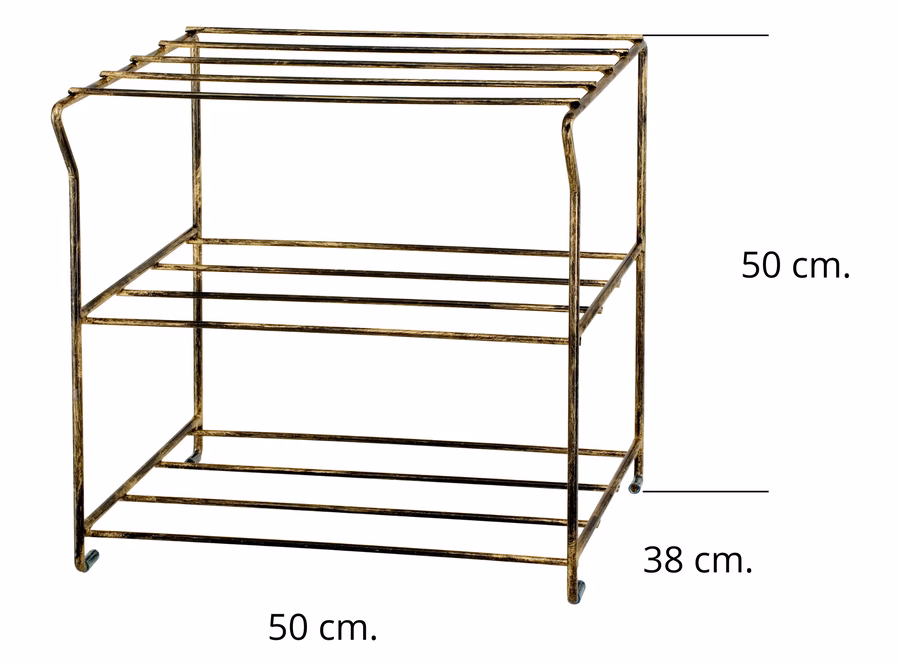 Interiors / Living room / Shoe racks shelves / Cabinets & sideboards & highboards - Metal shoe shelf. Organiser, shoe cabinet The presented shoe shelf is a combination of a functional object and a luxurious decoration. If you appreciate practical beauty, the presented product will certainly hit the spot with you! The shelf delights with its original and extravagant design. It will perfectly emphasise any classic interior, being its leading decorative element. The shoe shelf is made of metal, which increases its durability, serving Versanis customers for many years. The whole consists of three shelves set on a simple, but very impressive frame. The product features ornamentation in the form of unusual curves in the metal, which adds class and elegance. In addition to its stunning aesthetic qualities, the shelf is characterised by its functionality. It can be used for shoes or storing small items. It will look great in any hall, corridor or vestibule. The shoe shelf can be treated more as a decorative or practical element. Whichever way you go about buying the Versanis shelf, it is sure to meet all your expectations.