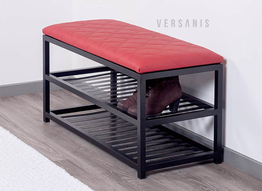 Furniture / Benches and sofas / Shoe benches - Shoe shelf with seat - Loft 90 Arrange your space imaginatively while saving space and time! For your hallway or corridor, choose a comfortable designer piece of furniture from the Versanis shop. The seat combined with two shelves is a 2-in-1 solution, which will be appreciated by lovers of universal design - one that will fit into homes of many different styles. The combination of metal profiles and soft upholstery is stylish and timeless - metalwork never goes out of fashion! The practical piece of furniture will come in handy as a seat for putting on your shoes and as a handy, surprisingly roomy shoe shelf, or for a box of shoe care accessories. The upholstered shoe shelf will work well as a single piece of hallway furniture or in a set with a wall-hung wardrobe.