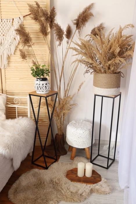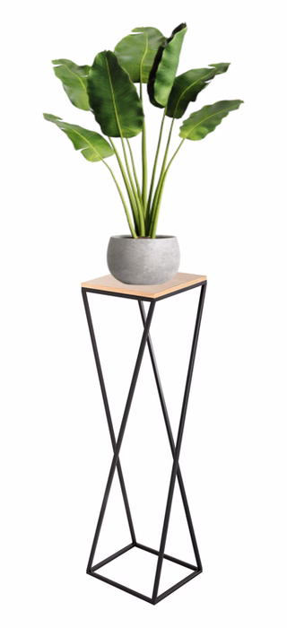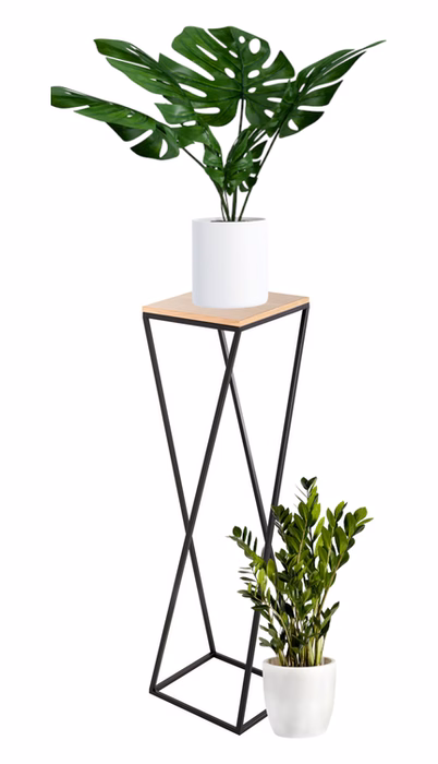Interior decorations / Stands / Multifunctional stands - Metal flowerbed, diagonal stand with top If you want to bet on a brand that will be able to offer you the highest quality furniture and accessories for your home or garden, then Kapelańczyk is certainly a company worth trusting in this product segment. Attention to the smallest details and details, care for beautiful appearance, the highest quality of products. Diagonal stand - an interesting piece of furniture in every home. The offered stand is made of metal and wooden veneer when it comes to the shelf. The structure has an interesting diagonal shape, which further emphasises its original appearance and unique design. As such, this stand will work well in any modern decorated space. Using the diagonal stand in our four corners If you want your space to be filled with nothing but modern, design elements, then this particular stand will certainly prove to be a very good product to use. It can hold a flower pot, you can place candles or a pyramid of books on it. It is ideal for the living room, perfect in the bedroom, sensational for the corridor, the study, the office, the restaurant. No matter where it is placed, it is sure to look phenomenal in any space.