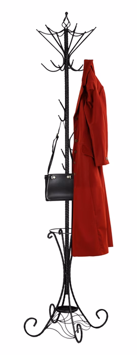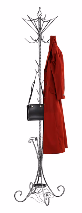 Interiors / Hallway / Closets / Clothes rack - Standing clothes hanger The presented product will delight many Versanis customers with its style and elegance. Created with modern and extravagant interiors in mind. The standing clothes rack is a practical decorative element of any hallway, corridor or vestibule. Thanks to its interesting design and top-notch aesthetic qualities, it will be the leading decoration in interiors just after crossing the threshold of the door. The standing hanger is a wealth of exceptional details, made with great precision and attention to detail. The tube is additionally fluted, which further emphasises the elegant character of the product. It is distinguished by its excellent stability, so it is not afraid of any load bearing coats or winter jackets. The product is equipped with a dozen or so clothes hooks, which makes it possible to store the outerwear of both household members and guests. The free-standing hanger is a very convenient solution, requiring no additional wall fastening.