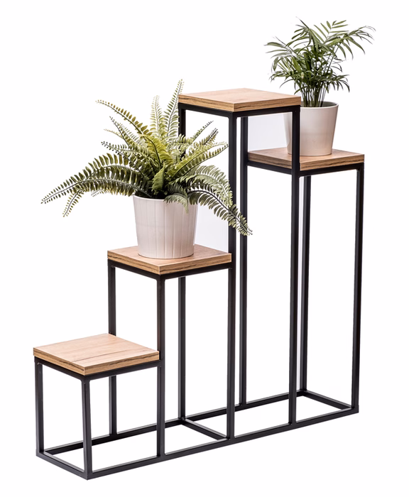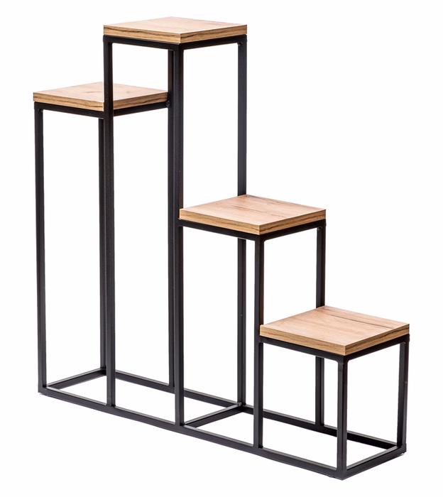 Interior decorations - Standing flower stand Metal flower stand with shelves 4 levels. The metal plant stand with 4 levels is not just practical but also a decorative element for both indoor and outdoor spaces. Made from durable, corrosion-resistant metal, it is ideal for everyday use. Its precise craftsmanship and stable construction ensure the safety of your plants, while the minimalist and elegant design fits seamlessly into modern or classic interior styles. The four levels of shelves allow for creative plant arrangements—from large, striking pots on the bottom level to smaller herbs or cacti on the top. Thanks to its compact dimensions, the stand is perfect for various spaces such as the living room, balcony, terrace, or garden. Use it to create a green oasis in your home or outdoor area. The metal plant stand is easy to clean and maintain. Its simple assembly allows for quick setup, and the sturdy base ensures stability even under maximum load. An excellent choice for anyone who values aesthetics, durability, and functionality in one.