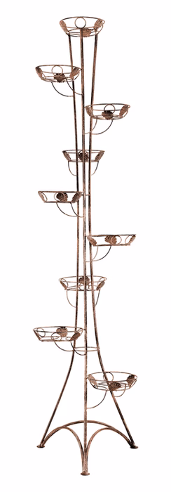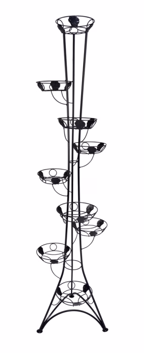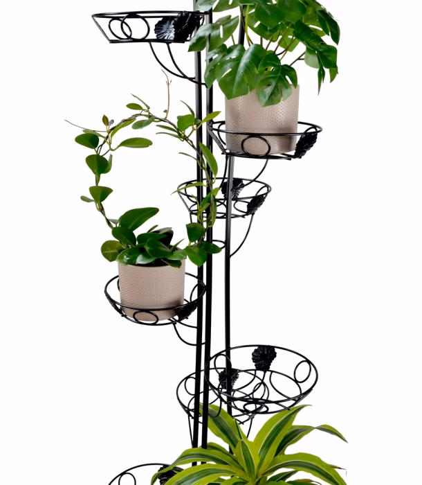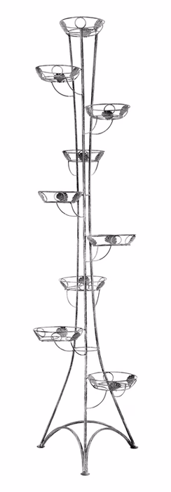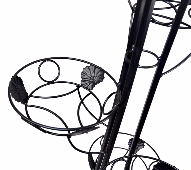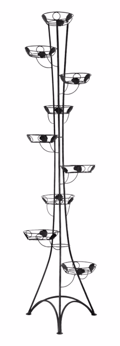 Interior decorations / Plant stands / Forged plant stands – large - Standing tall flowerbed for 9 plants The product presented here is an aesthetically pleasing flowerbed, making it possible to create a charming vertical plant composition. Due to its large size, it will fill any empty space in the room to the maximum. The design of this flowerbed provides space for many pots. The product is characterised by simplicity and classicism, but when combined with hanging and colourful plants, it looks exceptional. It allows a cosy and carefree atmosphere to be introduced into the interior. The flowerbed by the pot holders has a beautiful decoration, adding elegance and style not only to the product, but also to the entire room. Plants are one of the favourite and most frequently chosen decorative elements, and in combination with the universal flowerbed model they form a perfectly presentable whole. This model allows flower pots to be arranged asymmetrically in an interesting way.
