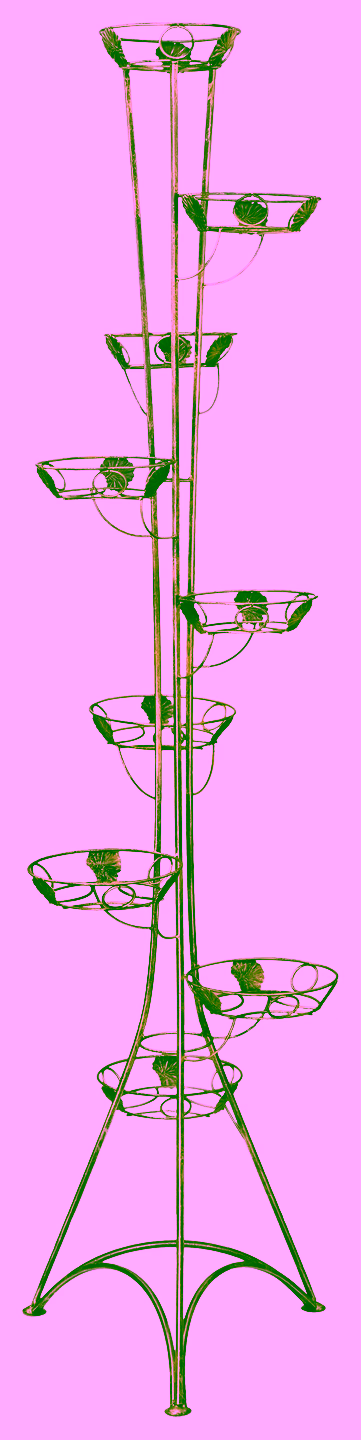Interior decorations / Plant stands / Forged plant stands – large - Standing tall flowerbed for 9 plants The product presented here is an aesthetically pleasing flowerbed, making it possible to create a charming vertical plant composition. Due to its large size, it will fill any empty space in the room to the maximum. The design of this flowerbed provides space for many pots. The product is characterised by simplicity and classicism, but when combined with hanging and colourful plants, it looks exceptional. It allows a cosy and carefree atmosphere to be introduced into the interior. The flowerbed by the pot holders has a beautiful decoration, adding elegance and style not only to the product, but also to the entire room. Plants are one of the favourite and most frequently chosen decorative elements, and in combination with the universal flowerbed model they form a perfectly presentable whole. This model allows flower pots to be arranged asymmetrically in an interesting way.
