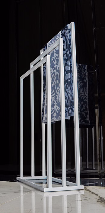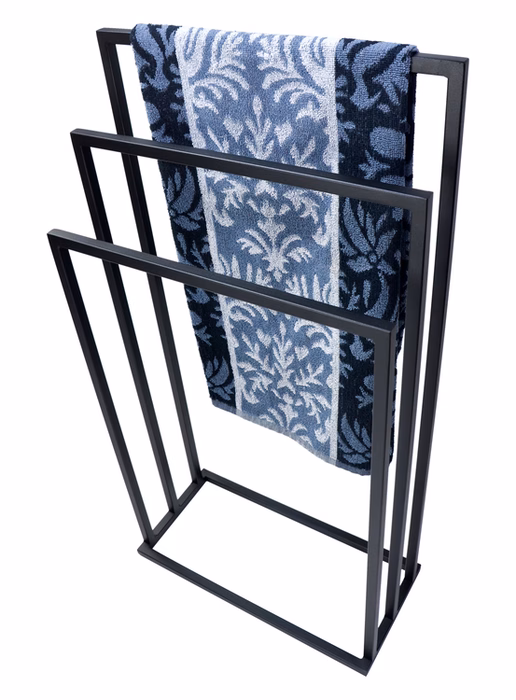 Interiors / Bathroom / Towel racks - Towel rack. 3 arm bathroom hanger We present a beautiful metal towel rack available in four colour variants. It has been entirely made of metal and protected with a high-temperature hardened varnish coating, which ensures that the product is adequately protected against moisture and colour fading. Versatility and simplicity Thanks to its strong and simple design, the stand will blend in with any interior style. It has three vertical arms. Each arm has been set at the right distance from each other and has a different height, which will allow for adequate air circulation and faster towel drying. This also makes it easier to hang towels of different lengths. No self-assembly is required. After removal from the packaging it is ready for use. Cleaning and maintenance It is recommended not to use detergents for cleaning. A cloth moistened with water is sufficient for proper cleaning.