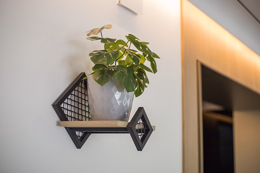 Interiors / Living room / Shoe racks shelves / Cabinets & sideboards & highboards - Wall florist, shelf with top Width of flower base - 22 cm. Universal, minimalist shape Stable and robust construction Painted with moisture- and corrosion-resistant lacquer Thanks to its compact dimensions, it takes up very little space Combination of modernity and functionality Table top made of furniture board in the colour oak sonoma A product that will serve you for many years Ideal as a shelf for books, flowers and decorative ornaments. Wall-mounted shelf for flowers Introducing the modern black wall-mounted shelf, which is ideal as a flowerbed or book stand. It is made of metal with a coating of high-temperature hardened lacquer, which makes the flowerbed highly resistant to abrasion and scratches. It will add a unique character to your interior without overwhelming the room with its form. Use in the home, office, hotel or restaurant.