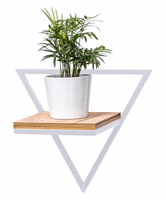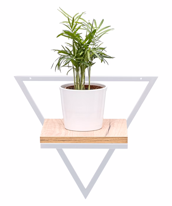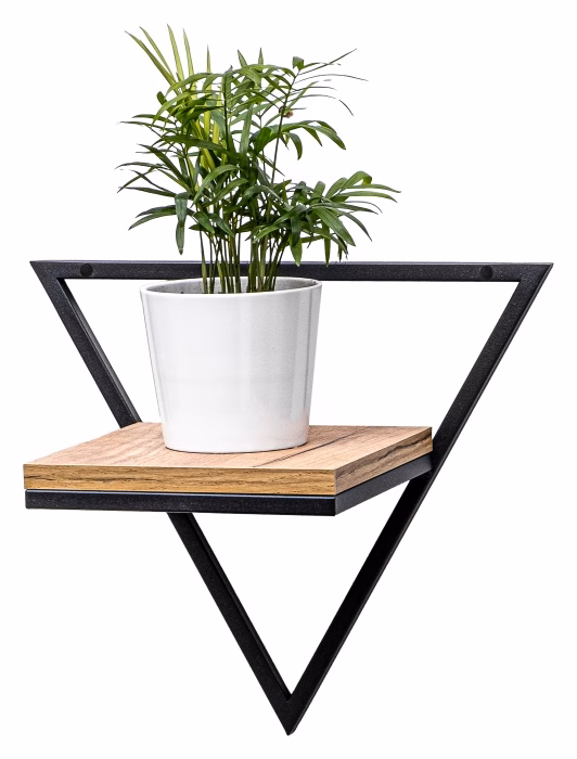 Interior decorations / Plant stands / Wall mounted plant racks - Wall triangle flowerbed with board Wall-mounted Triangle Planter with Wood Shelf is a modern, functional decorative piece that perfectly combines aesthetics and practicality. Its minimalist design and triangular shape make it a unique accent in any interior, whether industrial, Scandinavian, or contemporary. This planter is the perfect solution for those who want to add a touch of nature to their space without compromising on sleek and elegant forms. Product Features: High-Quality Materials: The planter is made from sturdy wood with a natural finish, giving it warmth and character. The shelf, on which the plants sit, is carefully crafted to ensure durability and aesthetic appeal over time. Innovative Shape: The triangular shape of the planter gives it a unique look that fits perfectly into modern design trends. It is a great alternative to traditional rectangular shelves or planters that may dominate a space. Versatility: The product fits well in various spaces: from living rooms and kitchens to offices and bedrooms. It can be hung on the wall, saving floor space while adding lightness to the room. Easy Installation: The planter is easy to mount on the wall, allowing for quick and convenient space arrangement. All necessary mounting accessories are included in the set. Stylish Way to Display Plants: The planter is perfect for displaying potted plants. It allows for an aesthetic presentation while ensuring adequate light for plant growth. Use: It is ideal for displaying medium and small-sized potted plants, such as succulents, cacti, or climbing plants. It also works well as a place to store small decorative items like candles or figurines that add a unique character to your space. This triangular planter with wood shelf is a product that stands out not only for its modern appearance but also for its functionality and durability. It is the perfect choice for those looking to style their space in an elegant, yet simple and natural way.