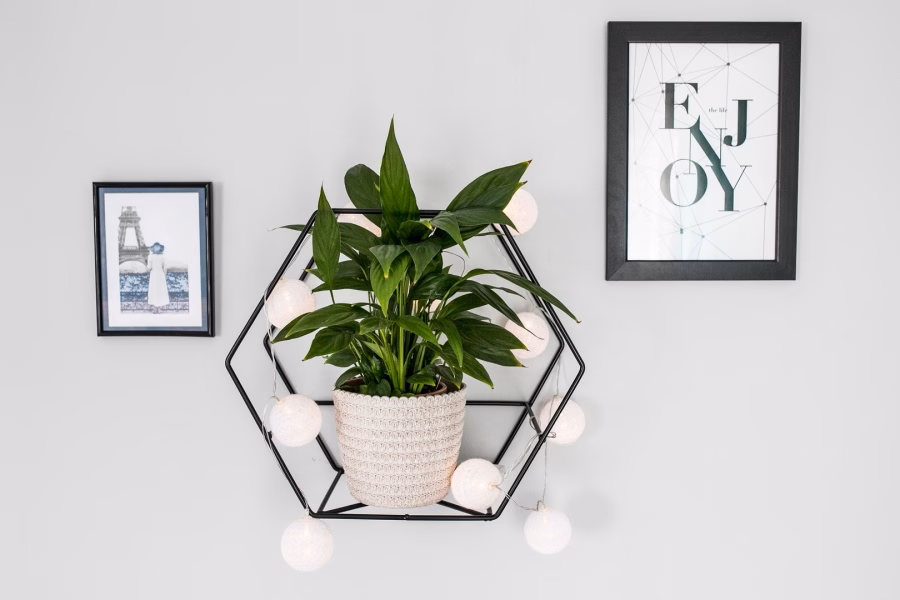 Interior decorations / Plant stands / Wall mounted plant racks - Wire wall florist - SLICE Base dimensions 20x20 cm. Universal, minimalist shape Stable and robust construction Coated in moisture- and corrosion-resistant lacquer Thanks to its compact dimensions, it takes up very little space Combination of modernity and functionality A product that will serve you for many years. Flowerbed/wall shelf Hanging flowerbeds have long been part of our surroundings. Among other reasons, hanging flowers are a great decoration for the wall and the entire space. They can be hung in the form of baskets, but can also be directly attached to the wall. The model we present is a great combination of taste and minimalism. It will add an original touch to any room. It is made entirely of wire bent in a very delicate way. It comes in three fashionable shades that allow it to blend in with any space. It is up to you and your vision for the room whether you choose a basic black or white version or perhaps a beautiful golden shade. The Planter is also ideal for installation as a freestanding product. INSTALLATION METHOD: Mounting method: wall plug with screw - 6 mm straight hook. The product does not contain the components needed for assembly!